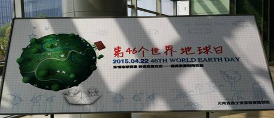 今年4月22日是第46个世界地球日(以下简称地球日)。地球日是宣传我国国土资源国情国策、提高公众节约集约利用资源意识、普及地球科学技术知识的重要平台。活动宗旨在唤起人类爱护地球、保护家园的意识,促进资源开发与环境保护的协调发展,进而改善地球的整体环境。为做好地球日主题宣传活动,国土资源部按照“十二五”期间地球日主题宣传活动主题要求,结合经济发展新常态下国土资源工作面临的形势和任务,确定2015年地球日活动主题为“珍惜地球资源 转变发展方式——提高资源利用效益”。