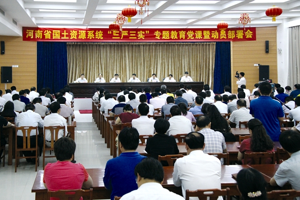 会议由厅党组成员、巡视员文茂林主持。在郑厅领导,厅机关全体党员干部,河南省煤田地质局、河南省测绘地理信息局、厅直属单位领导班子成员在厅主会场参加会议。各省辖市国土资源局、直管县(市)国土资源局(地矿局)党员干部在全省26个分会场参加会议。