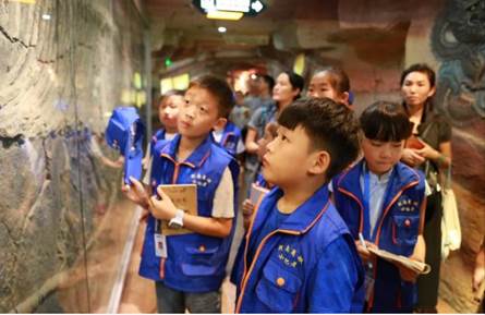 在讲解员的带领下,首先进入了馆内的地下一层,了解地球的诞生,以及地球上出现人类以来,创造的文明。 “大气圈、水圈、生物圈、岩石圈,各个圈层之间相互吸引、相互制约,形成人类赖以生存和发展的自然环境。” 小记者看着背景图上的释疑,在讲解员的解答下,对地球的外部圈层,深入了解。小记者们了解了鱼类的进化与繁殖,更为馆内展出的鱼龙化石之大所惊叹。而当小记者步入恐龙厅后,一个个大型的恐龙骨架,更是让他们惊叹。“恐龙这么好玩,为什么都灭绝了呢?”四年级的小记者冷云天,对此产生了极大的兴趣,在电子解说屏前,他一一查看“恐龙灭绝的6种假说”,并将各种假说,记录在采访本上。