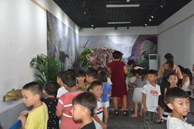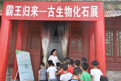 作为全国科普日的系列活动一部分,为了充分利用各种场地资源,积极创新“走出去,请进来”的科普工作机制,首次在文博类博物馆与自然地质类博物馆新的合作交流方式,让广大青少年特别是县、乡的中小学生更多的了解古生物科学知识,推动科普教育的不断发展,扩大本馆在古生物科普等方面的影响力,我馆与沁阳市博物馆合作举办特别展览《霸王归来—古生物化石展》,通过图文并茂的展板、恐龙实物化石这些亿万年前极具代表性的标本及模型的展览等形式,面向青少年、农民、城镇劳动者、公务员、科技教师、社区居民等重点人群,可以让观众了解恐龙时代的动物与植物以及他们的演化方向,解开恐龙化石和恐龙蛋化石发现的地方距离为什么会那么远,恐龙蛋真假辨别方法等。可以让参观者近距离的感受和接触大自然的奥秘与神奇,也可以让更多的人群了解当时的古生物生存的时代及古环境。在9月16日至22日期间,参观人数就达到了1000多人次,在县级博物馆中反响极大,也为以后的创新科普传播提供了很好的合作平台。