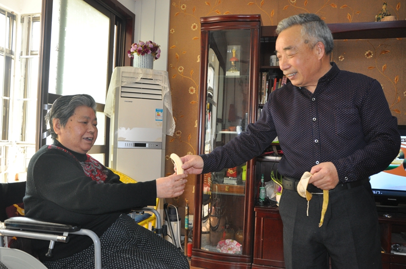 从那以后,赵荫泉再也没离开妻子半步,从做饭、穿衣、洗澡、上厕所,到梳头、剪指甲等一系列的生活起居,都由赵荫泉这个大老爷们全权“操办”。由于长时间的血液不循环,妻子左边的腿足足比右边肿了一圈,于是赵荫泉学会了各种按摩方法,没事儿就会给妻子揉一揉;再后来,因洗澡时腿部遇水引发了皮肤溃烂,赵荫泉索性又当起了“护士”,天天为妻子换药;妻子同时患有高血压,所以每天起床后,赵荫泉便养成了一个习惯性动作,那就是从床边拿起血压计……时间久了,赵荫泉要干的事情就越来越多,两个人也越来越有默契,除了赵荫泉,没人能听懂妻子的“咿呀”之语,哪怕只是一个眼神、一个动作,他都能心领神会。