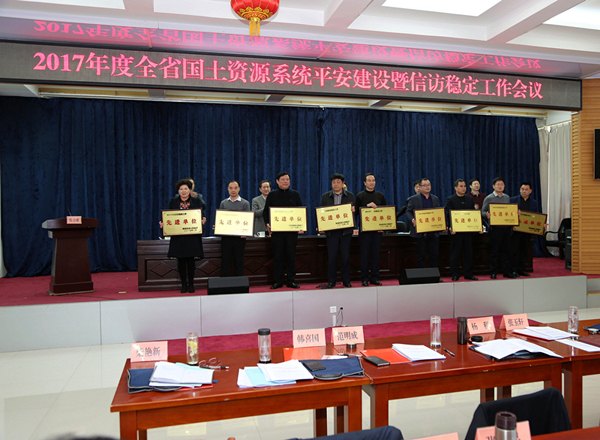 2016年度全省国土资源信访稳定工作先进单位上台领奖