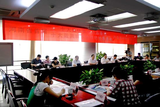 8月18日上午,由河南省地质学会与资源导刊杂志社联合举办的河南首届“十大最优美的地质景观”和“十大最具科学价值的地质遗迹”评选活动新闻座谈会在省国土资源厅隆重举行。光明日报河南记者站、新华网河南分社、新浪网、中国新闻社河南分社、河南电视台、河南日报、大河报等众多新闻媒体及进入候选名单的景区共40余人参加了本次新闻发布会。