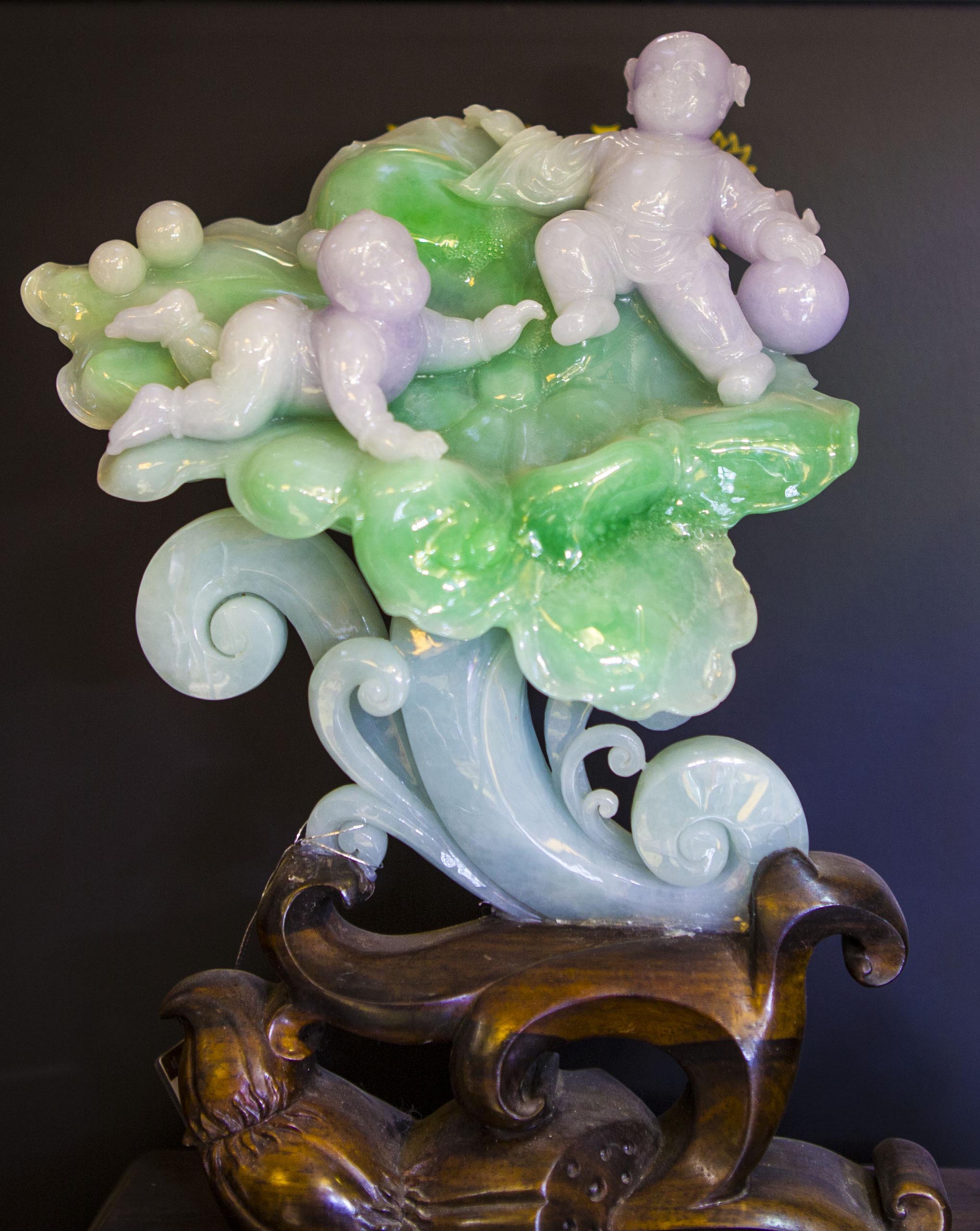 春带彩和合二仙翡翠摆件