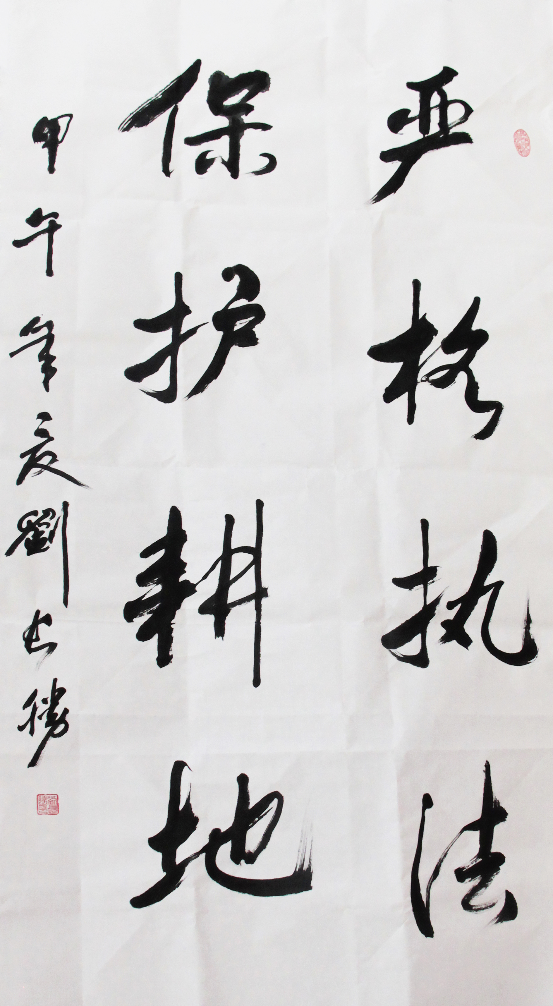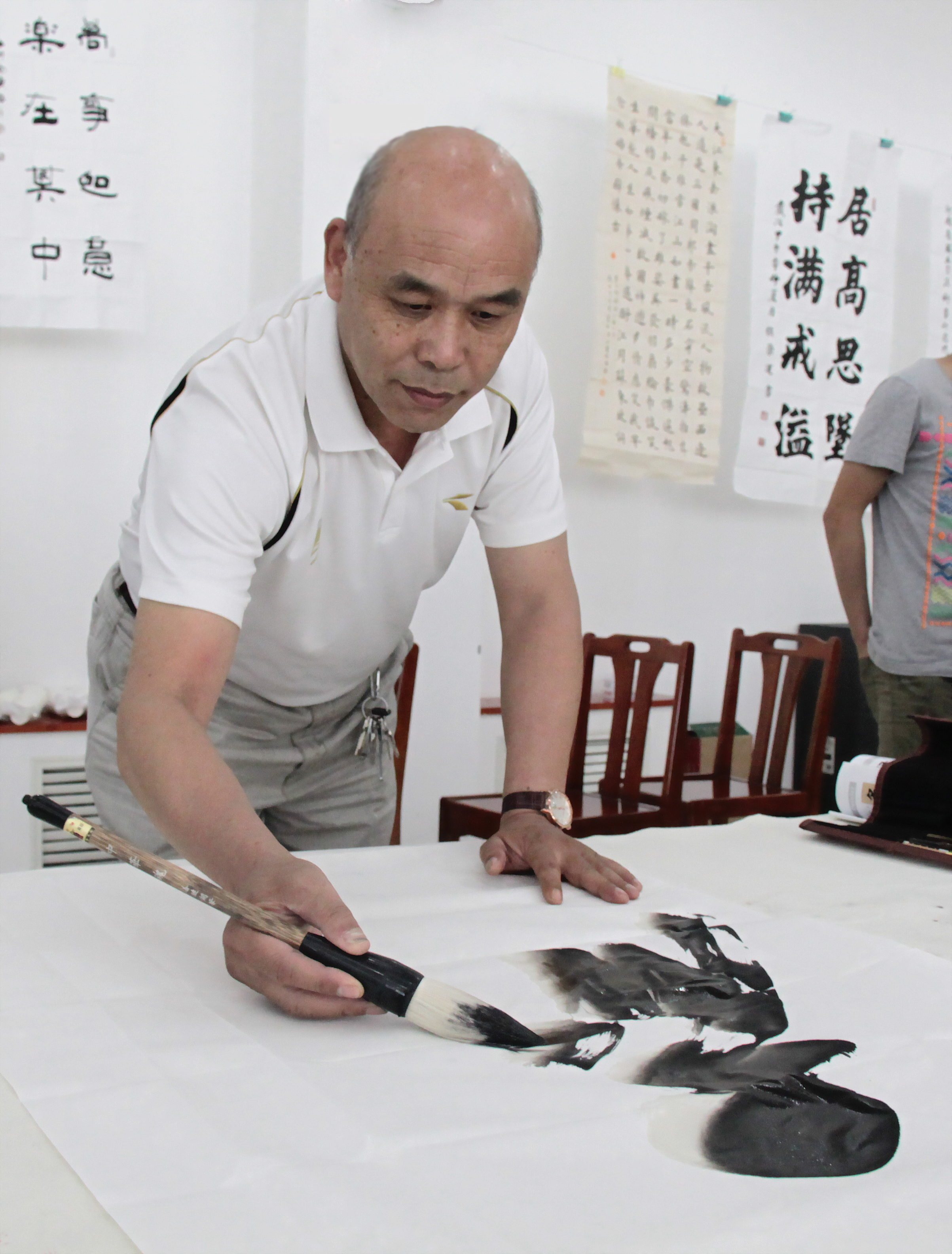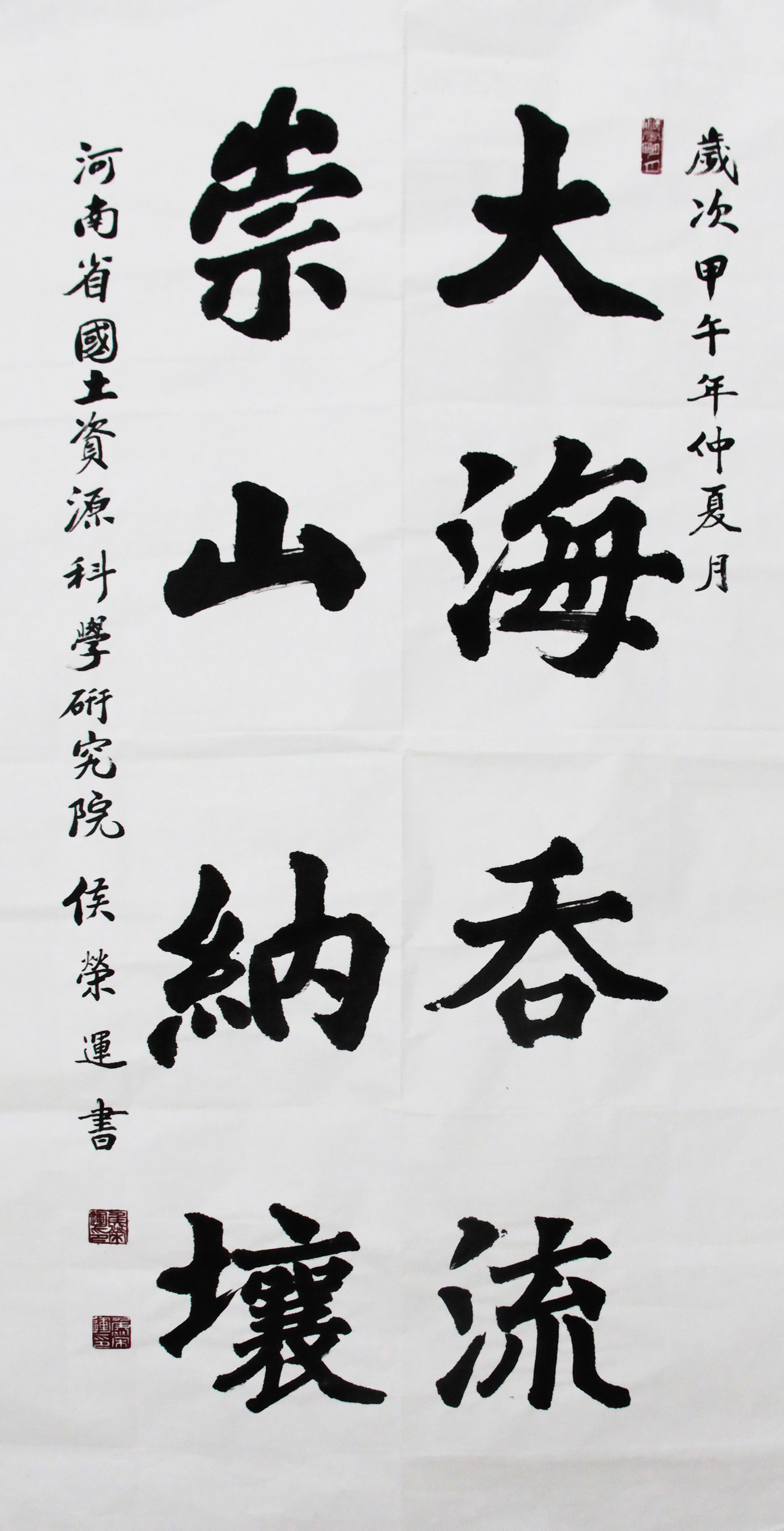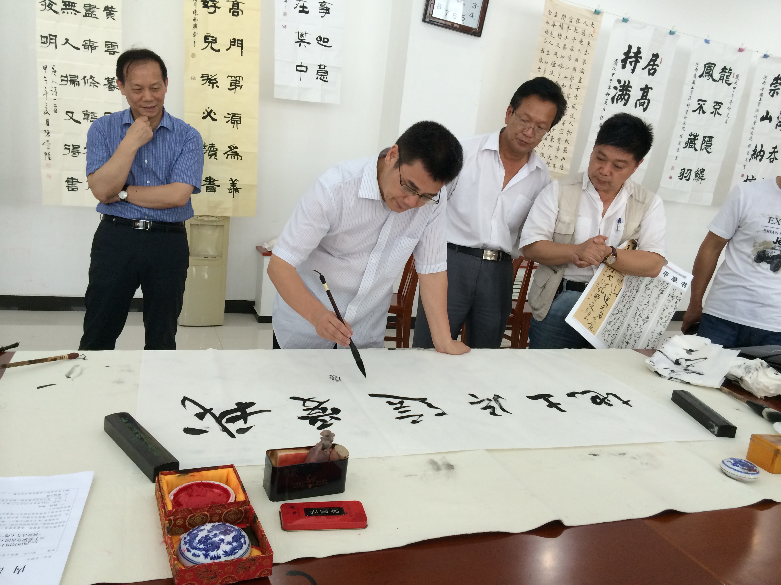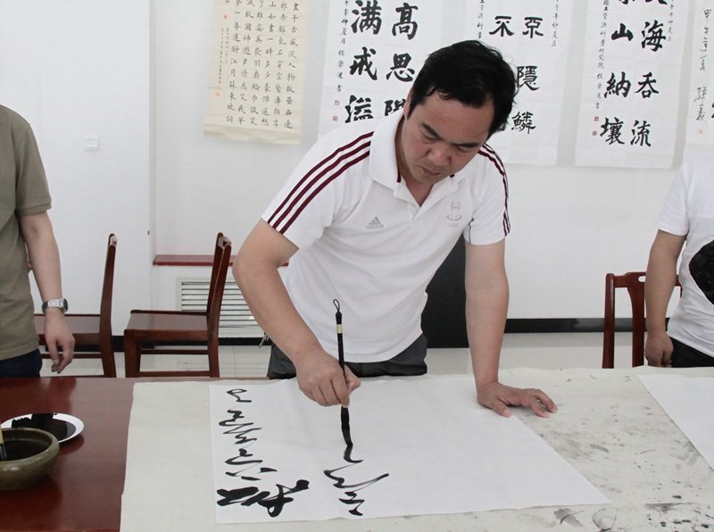 | 为迎接第24个全国“土地日”,满足广大干部职工的精神文化需求,加强国土资源文化建设,展示国土资源人的精神风貌,省厅于2014年6月20日举办了全省国土资源系统书画名人“我爱这片土地”交流笔会,全省国土资源系统30余名书画爱好者参加了交流笔会,河南省书协草书专业委员会秘书长侯和平应邀参加。大家现场挥毫,书写了一幅幅优秀作品,侯和平副会长对大家的作品进行了点评。通过这次交流笔会,大家以书画的形式抒发了国土资源人对工作的热情,对生活的热爱。