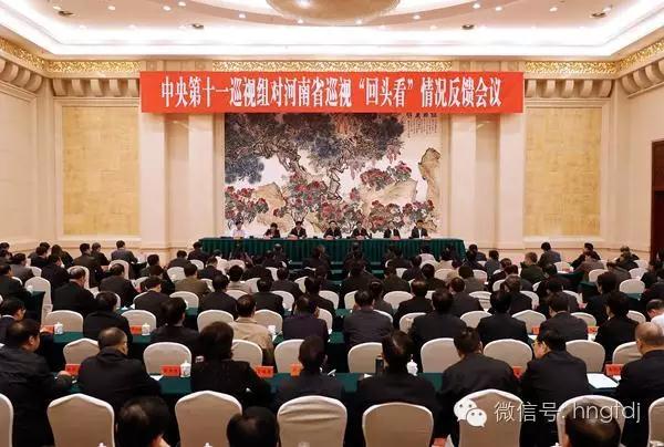 根据中央巡视工作领导小组部署,2016年10月11日,中央第十一巡视组向河南省委反馈巡视“回头看”情况。中央巡视工作领导小组成员姜信治向河南省委书记谢伏瞻传达了习近平总书记关于巡视工作的重要讲话精神,中央第十一巡视组组长徐令义,副组长薛利、刘安成、丁伯东反馈了巡视“回头看”情况。之后,徐令义代表中央巡视组向河南省委领导班子进行了反馈,姜信治对巡视整改工作提出要求。谢伏瞻主持会议并作表态发言。